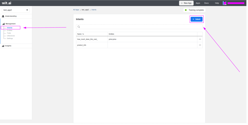 Now, when you have created a new app, you should define intents, you want your chatbot to recognize.